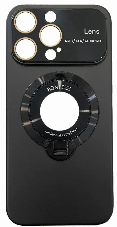 - Силиконовый чехол iPhone 15 Pro Max Bontezz MagSafe с подставкой черный