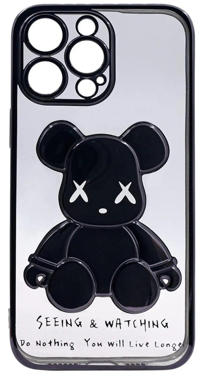 - Чехол для iPhone 14 Pro прозрачный с 3D мишкой Черный