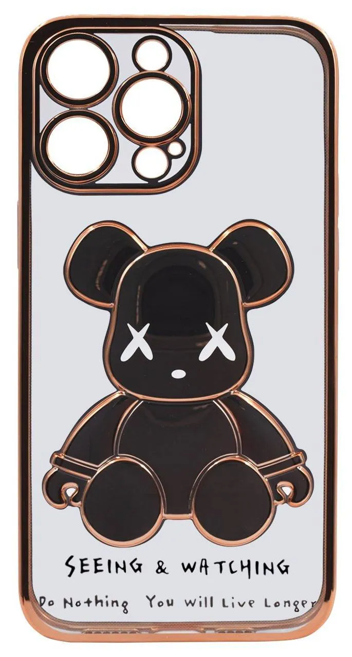 - Чехол для iPhone 14 Pro прозрачный с 3D мишкой Золотой