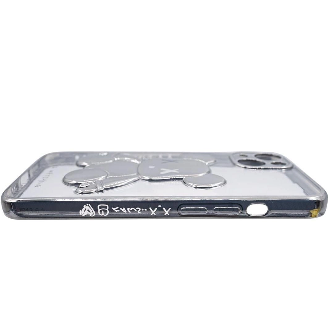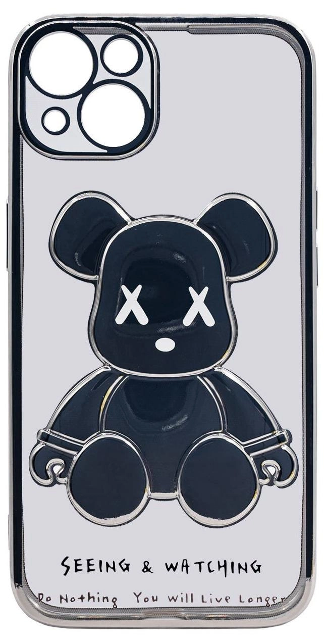 Чехол для iPhone 14 прозрачный с 3D мишкой Серебристый