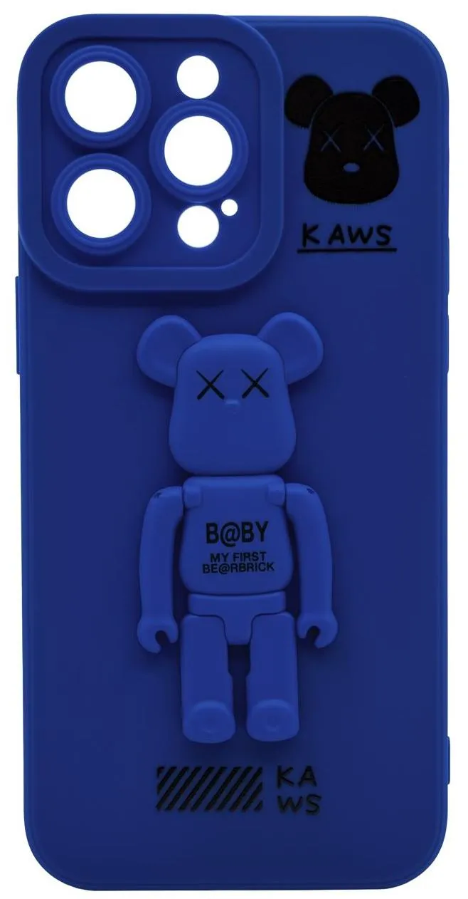 Силиконовый чехол для iPhone 14 Pro с 3D мишкой Синий
