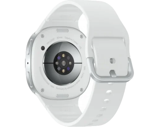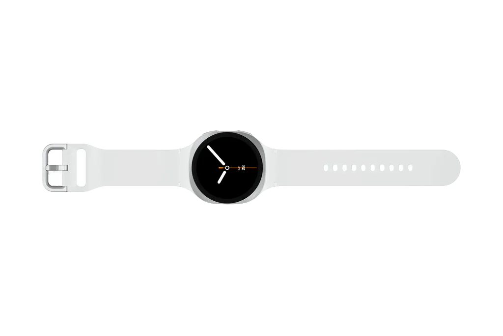 Galaxy Watch 8 сменил пропорции, но не стиль. Часы выглядят более утончённо, их корпус стал легче и тоньше, а форма всё та же знакомая — округлый прямоугольник с мягкими краями. Серебристый оттенок придаёт устройству спокойную элегантность, не привлекая к себе лишнего внимания. Появившаяся застёжка Dynamic Lug, кстати, не просто декоративный элемент, а инженерный приём, который помогает плотно посадить часы на руку. Так датчики плотно соприкасаются с кожей и выдают более точные данные, при этом никакой тяжести на запястье не ощущается. Всё это собрали в корпусе из Armor Aluminum, который одновременно крепкий и почти невесомый