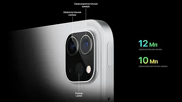 iPad Pro оснащен сверхширокой камерой с 12-мегапиксельным сенсором и полем обзора 122 градуса, которая идеально подходит для съемки фотографий и видео для социальных сообщений, звонков в режиме FaceTime с центральной сценой или селфи в портретном режиме. И он работает с камерой TrueDepth, чтобы безопасно разблокировать iPad Pro с помощью Face ID. Благодаря сверхширокой камере и машинному обучению Center Stage меняет способ участия в видеозвонках. При перемещении экран автоматически настраивается, чтобы держать Вас в центре кадра. Когда другие пользователи присоединяются к вызову или покидают его, изображение расширяется или увеличивается. Center Stage работает с FaceTime и другими приложениями для проведения видеоконференций для еще более увлекательного взаимодействия.