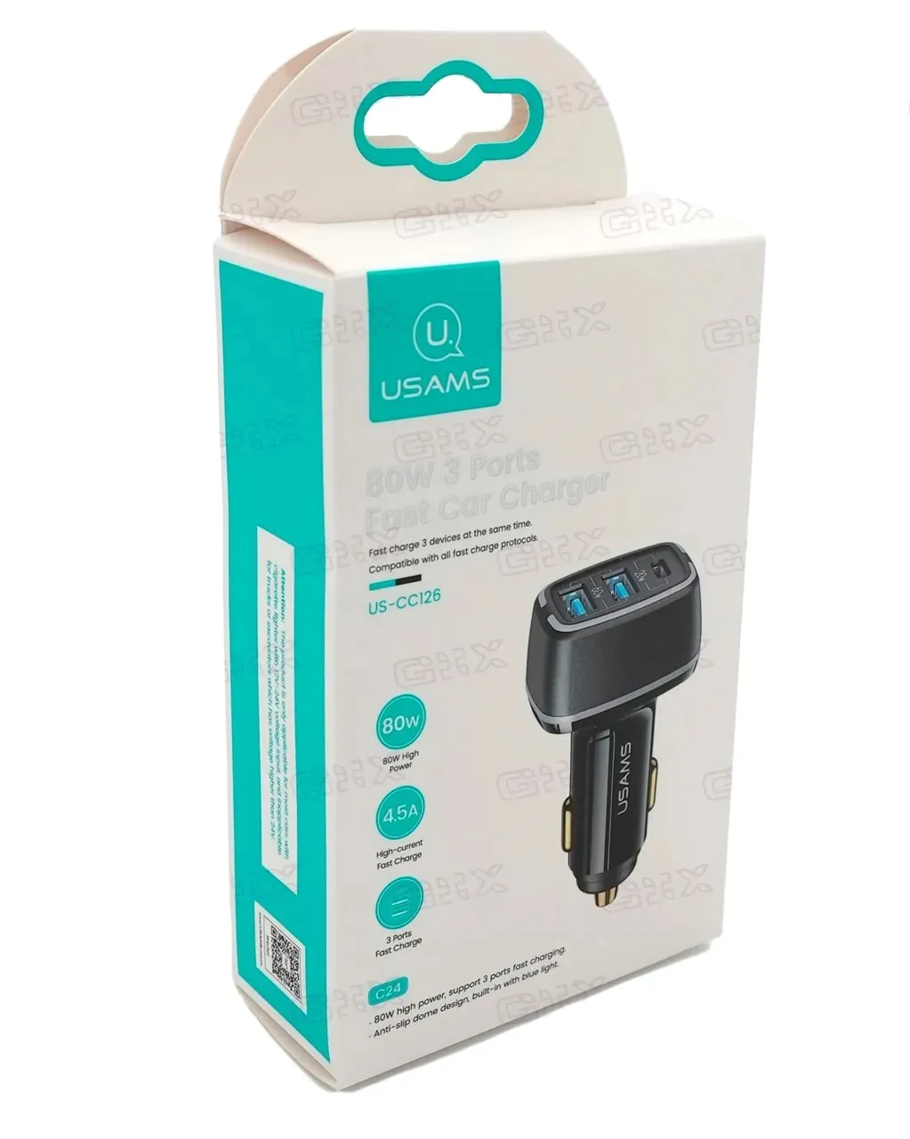 - Автомобильное зарядное устройство USAMS 80W 3 Ports Fast Car Charger